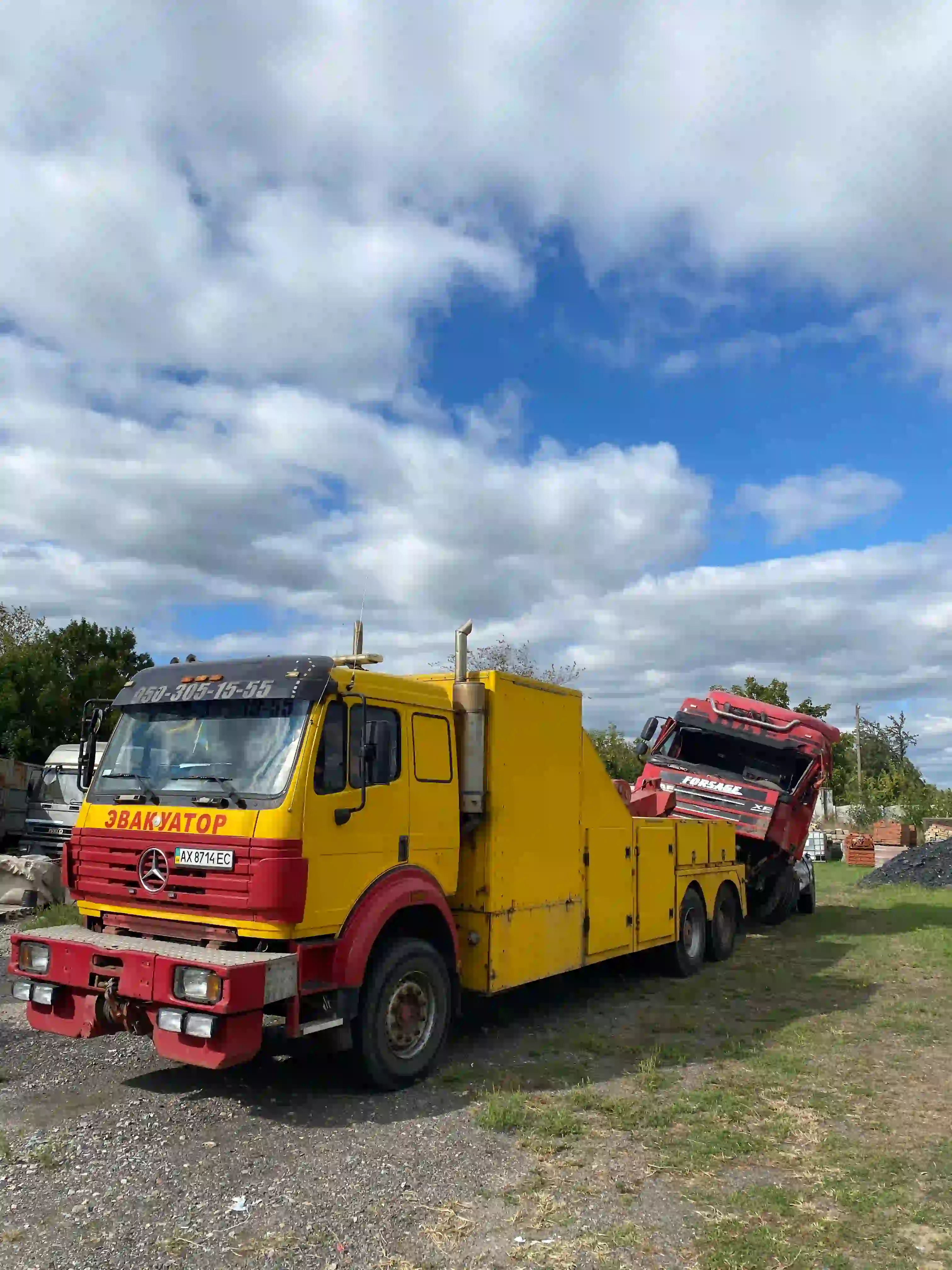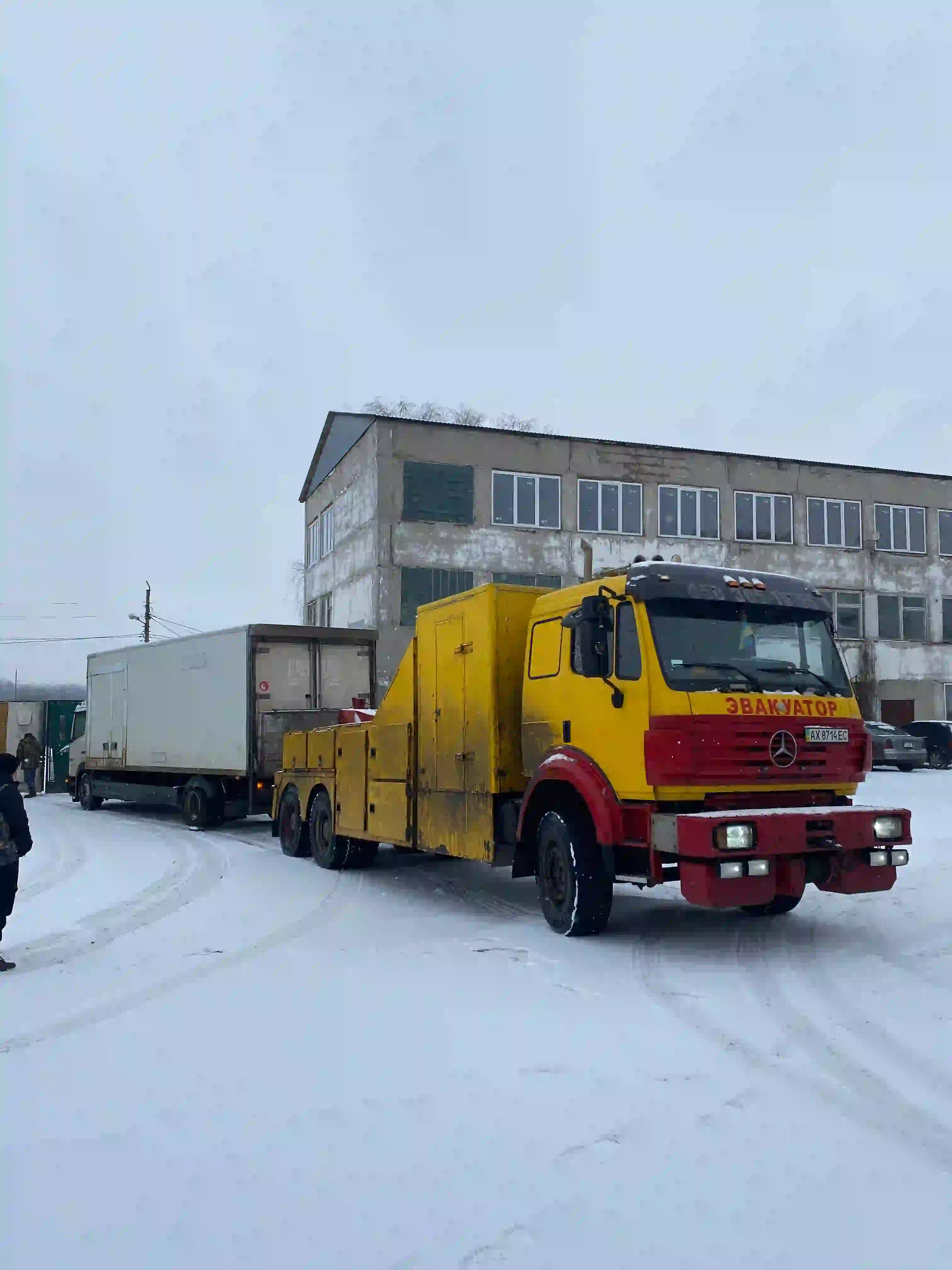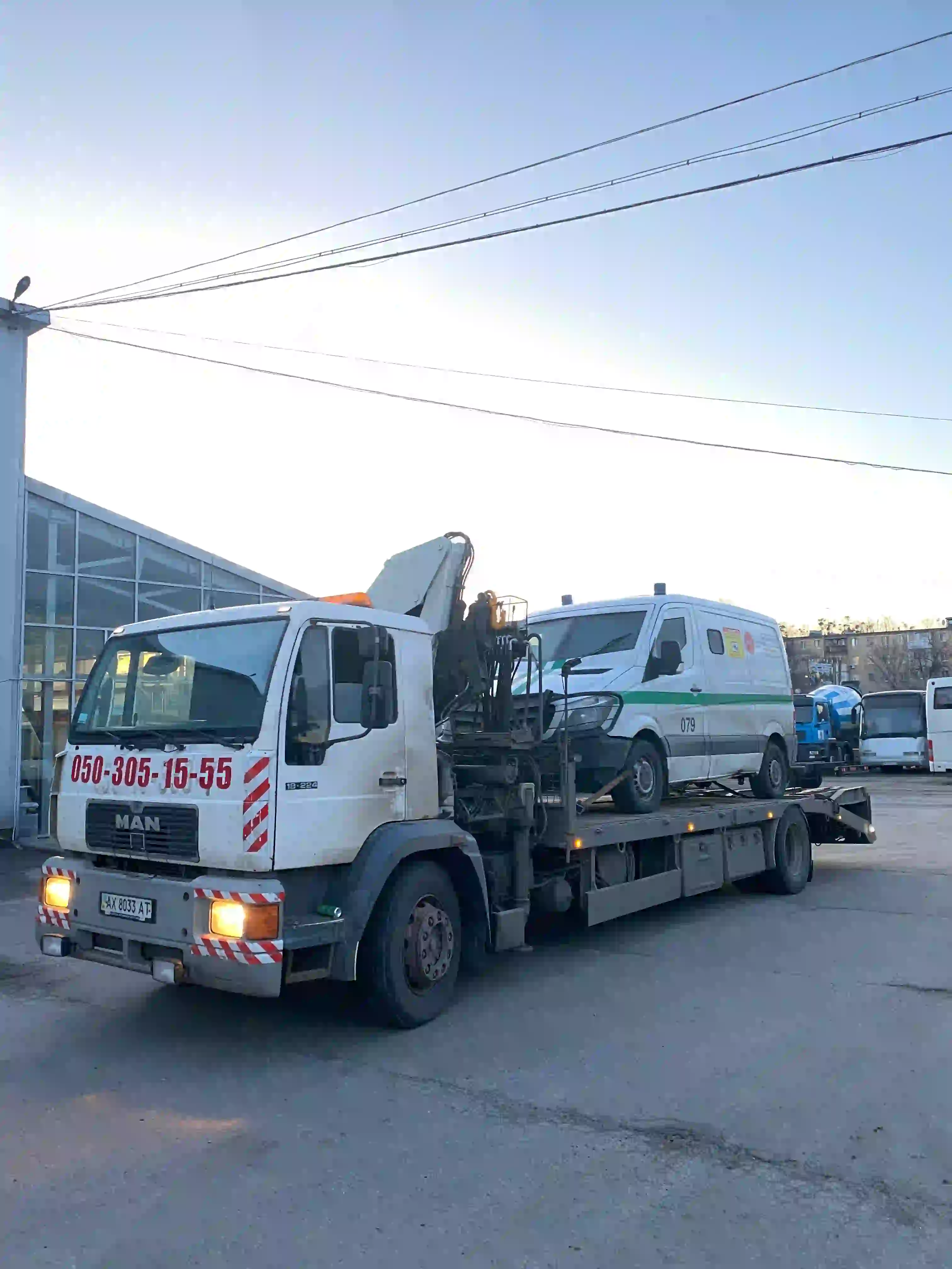 2. Вантажний евакуатор з повним завантаженням, за допомогою лебідки або крана-маніпулятора.